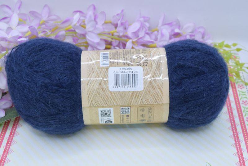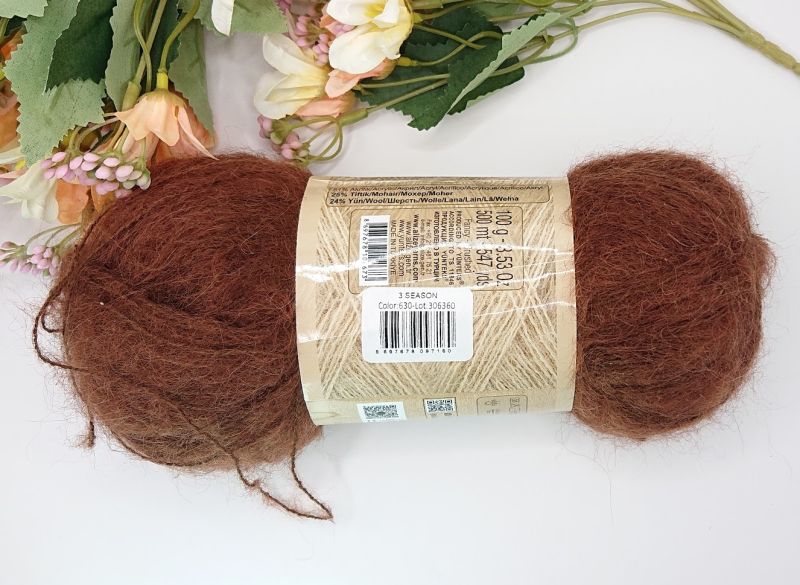 3 Season (3 сезон) - це дуже тонка і вельми ворсиста пряжа. Візуально схожа на кідмохер із шовком через те, що основна центральна нитка трохи глянцева. У складі вовна, мохер та акрил.