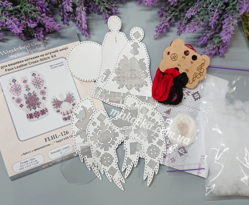 Унікальна 3D-фігурка янгола, яку ви створюєте власноруч! Цей набір від Wonderland Crafts дозволяє оживити витончений образ із високоякісної екошкіри. Головна особливість — традиційний чорно-червоний орнамент, який ви вишиваєте самі, перетворюючи пласкі заготовки на об'ємний символ захисту та затишку.