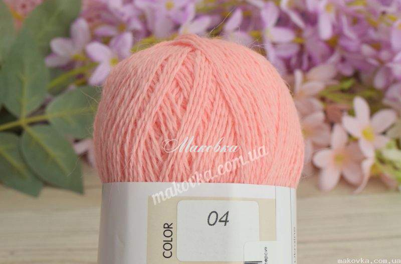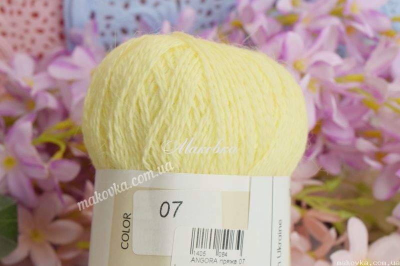 Angora - тонка м'яка нитка, з пуху кролика в поєднанні з нейлоном. Нитка слабо кручена і в міру ворсиста, приємна на дотик. Підходить для ручного в'язання спицями та гачком. Прекрасно поводиться в роботі, пух практично не лізе, до рук не прилипає, нитка в'яжеться легко спицями з тонкими кінчиками, не розшаровується.