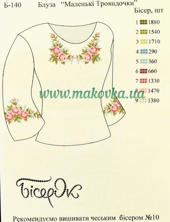Заготівля для вишивання блузки від ТМ Бісерок (Україна) з гарним малюнком з невеликих рожевих трояндочок