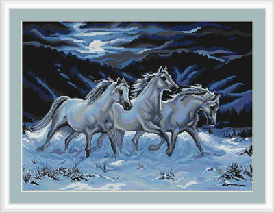 Набор для вышивания крестом B397 Пейзаж с тремя лошадьми
