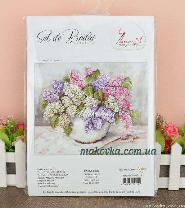 До набору входить канва Zweigart Аїда 16 молочного кольору, схема чорно-біла символьна з великими значками, голка, інструкція, бавовняне муліне.