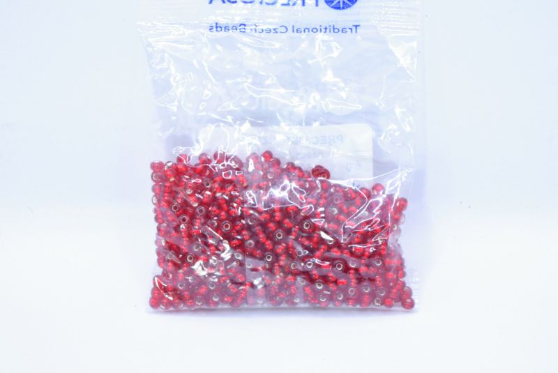 Бісер із кольорового прозорого скла з яскравою срібною лінією. Тобто бісер забарвлений зсередини сріблом, що надає йому красивого внутрішнього "вогню". Його ще називають "вогник" або "парчевий".