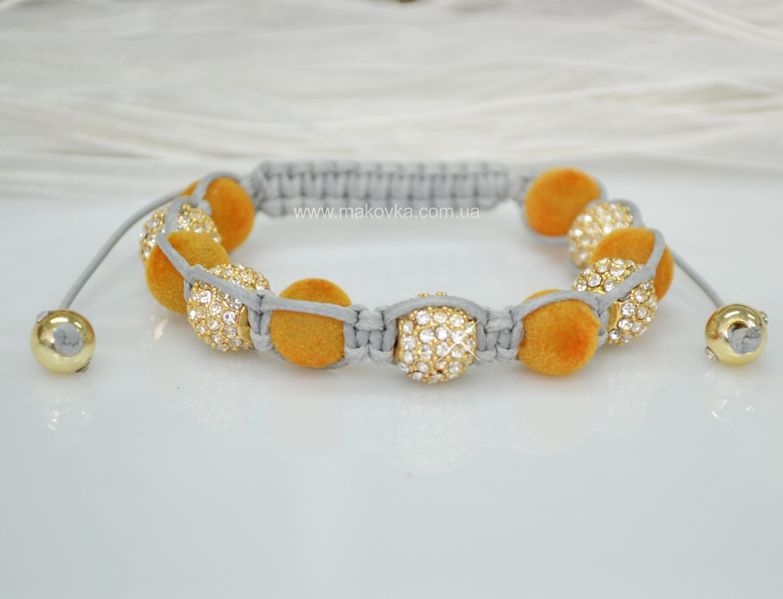 Браслет Шамбала Браслет Шамбала 08 золото с велюромМодный браслет-шамбалла. Пять "золотых" бусин инкрустированных белыми стразами и бусинки с велюровым покрытием. Материалы: серый вощенный шнур, металлические бусины со стразами, велюровые бусики. Не содержит тяжелых металлов - никель, свинец и кадмий. Размер бусин: 11 мм Минимальная длина браслета 17,5 см |