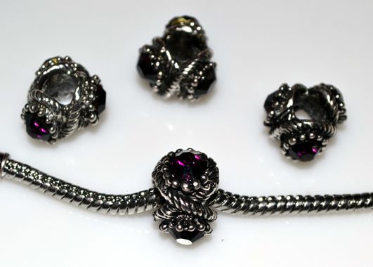 Бусина для украшений пандора-стиляс хрустальными камушками фиолетового цвета
