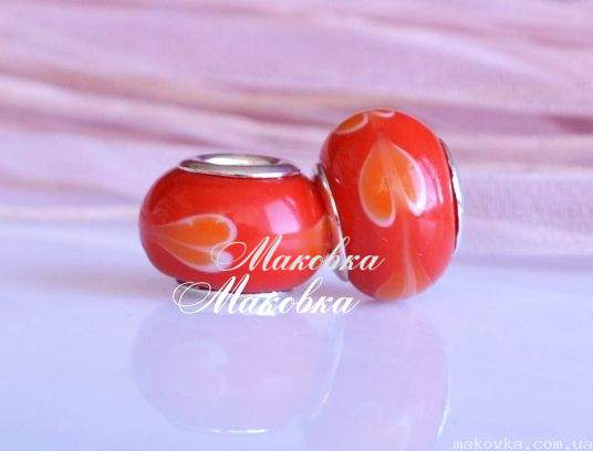 Бусина Пандора-стиля Lampwork №162 красная с сердечками