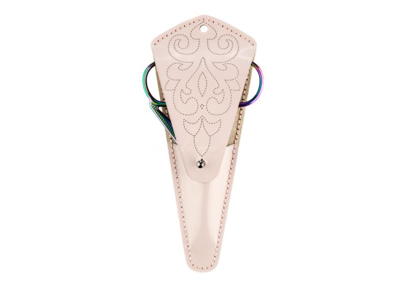 Цей компактний аксесуар розміром 15,5х6,5 см ідеально підходить для ножиць довжиною до 13 см. Завдяки поєднанню міцної фанерної основи та м'якої перфорованої екошкіри, виріб чудово тримає форму, виглядає дорого та надійно захищає леза.