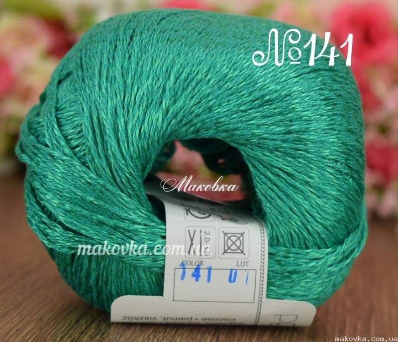 Нитка ближе к тонкой , плотная с красивым ярко-выраженным шелковым блеском. Очень приятная на ощупь и красиво смотрится в изделии. В мотке нитки кажутся немного мягче, чем в вязке. Из нее получаются необычные головные уборы, шарфы, перчатки, летние кофточки и разные аксессуары. Пряжа производится в Болгарии на современном обородовании