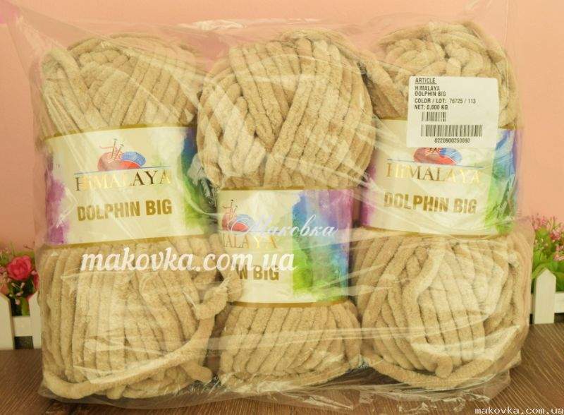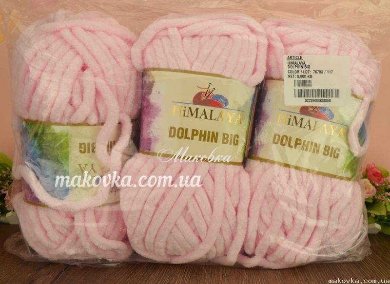 Dolphin BIG - товща різновид популярних люшевих ниток Dolphin Baby. Нитка товста, вміру пухнаста, дуже м'яка. Якість ниток високе - вони не "облазив", як дешових аналоги.