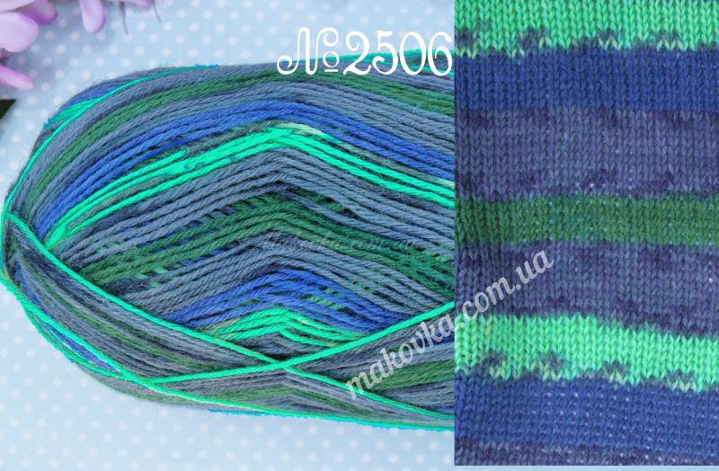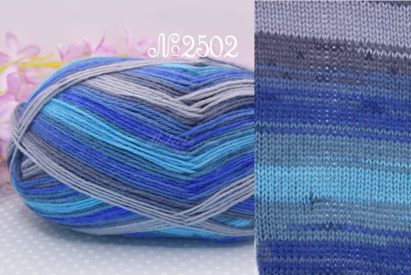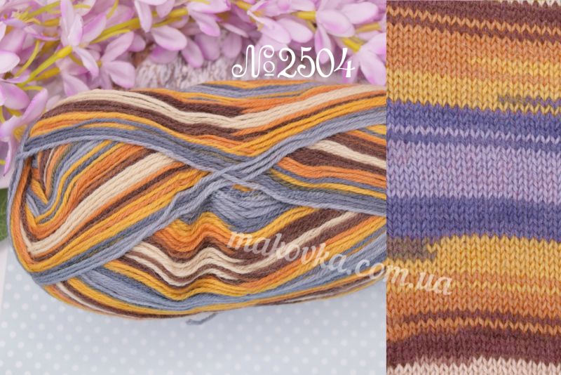 Коли ви в'яжете, смужки утворюються самі по собі, і не потрібно міняти на нитку іншого кольору. Це не лише зручно, але й вигідно, так як ви купуєте всього 1 моток ниток, а не кілька мотків різного кольору :) Мотка вистачає на пару шкарпеток стандартної висоти.