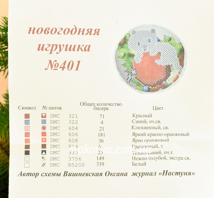 В комплекте с игрушкой идет ключ с рекомендацией по подбору бисера и ниток.