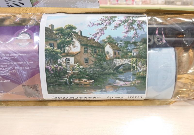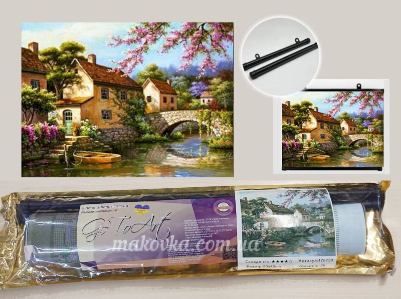 Тримач із трубчастою конструкцією забезпечує надійну фіксацію полотна. У комплекті: дві пластикові трубки, бічні заглушки та кріплення для підвішування. Готова картина виглядає стильно та охайно.