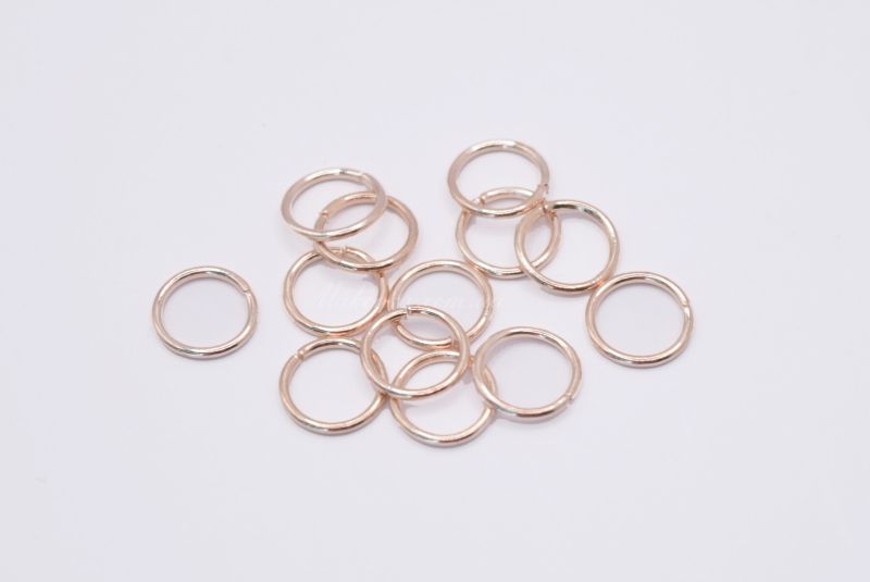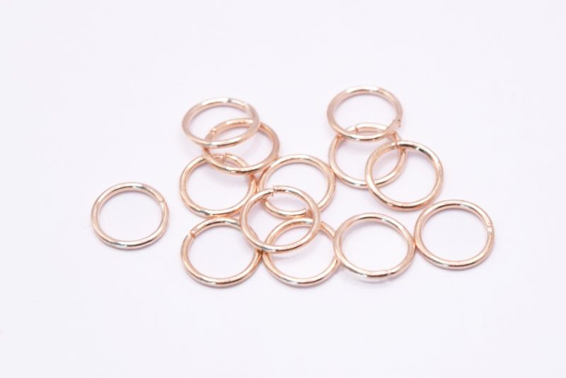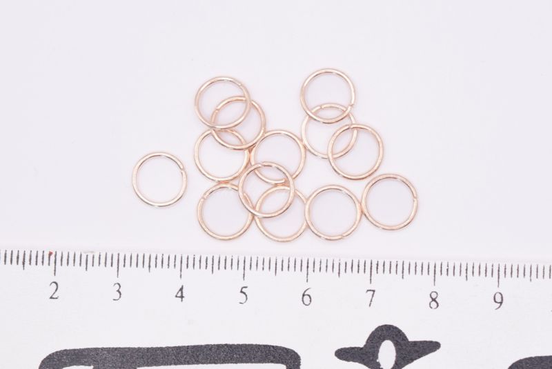 Колечка для з'єднання деталей бісерних виробів. Являють собою один віток щільної спіралі. Фасування: 2 г (приблизно 12-13 шт) Колір:Світле Золото Діаметр: 9 мм