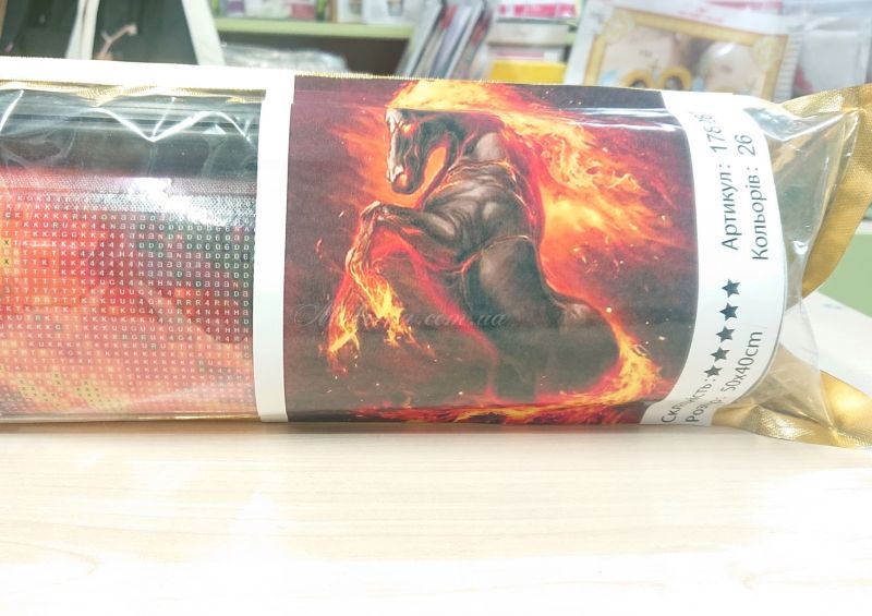 Склад: полотно з основою, що є клейка (повністю або частково ), тримач із пластику для полотна, стрази, контейнер для страз, олівець для страз стилус, сухий клей, інструкція з використання.