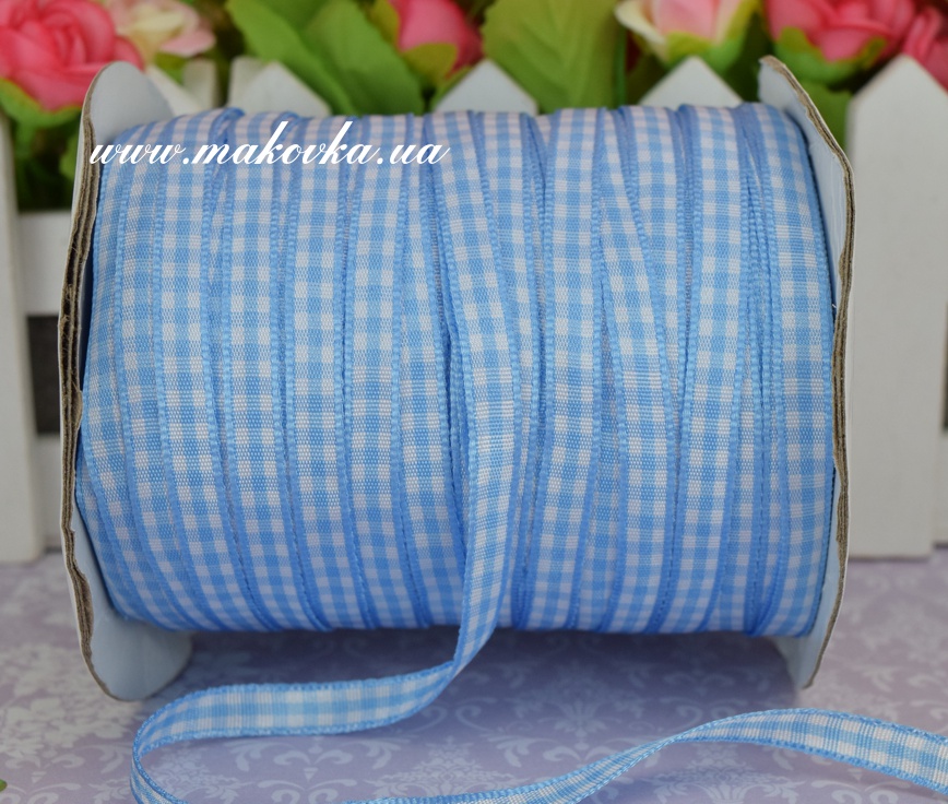 Тонкая ПЭ лента с рисунком в бело-голубую клеточку.