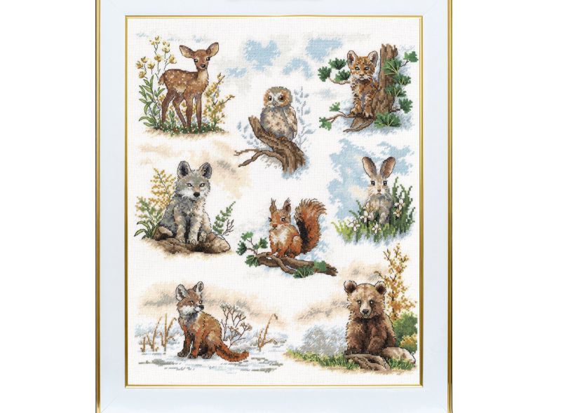 Витончений натуралістичний семплер, що збирає в єдину композицію найхарактерніших мешканців європейського лісу: від грайливого лисеняти та плямистого оленятка до пухнастої білочки та мудрої сови. Завдяки стриманій палітрі та детальному опрацюванню, робота має вигляд сторінки з дорогого атласу натураліста, що робить її стильним елементом сучасного дому.