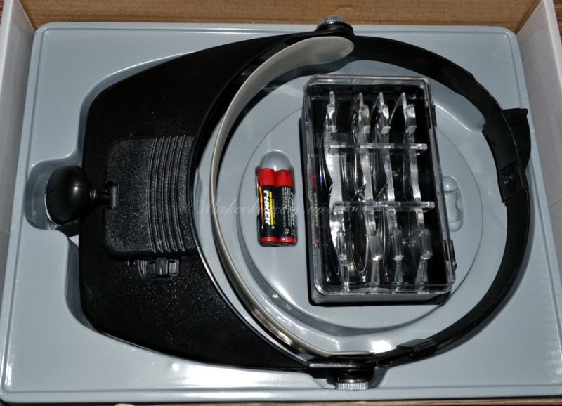 Лупи кріпляться до спеціального тримача, який одягається на голову. Діаметр тримача регулюється залежно від розміру голови. До набору входять 4 тривимірні лінзи з різним ступенем збільшення: 1,2х, 1,8х, 2,5х та 3,5х. Ступінь збільшення можна змінювати залежно від відстані до об'єкта, з яким ви працюєте. Коли лупа не потрібна, її можна підняти вгору.