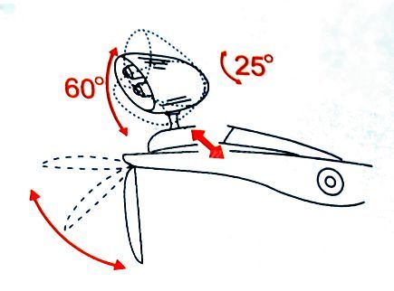 Світлодіодну лампочку можна повертати вгору-вниз на 45 градусів та вправо-вліво на 25 градусів. Лампа працює від двох батарейок типу ААА, які входять до комплекту.