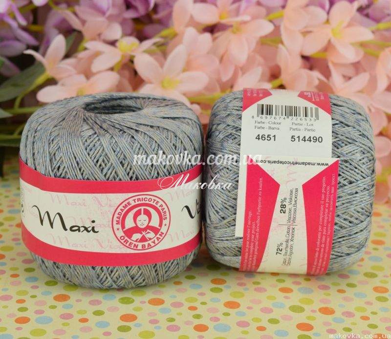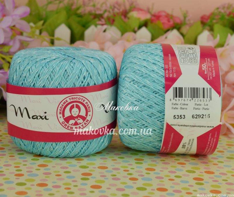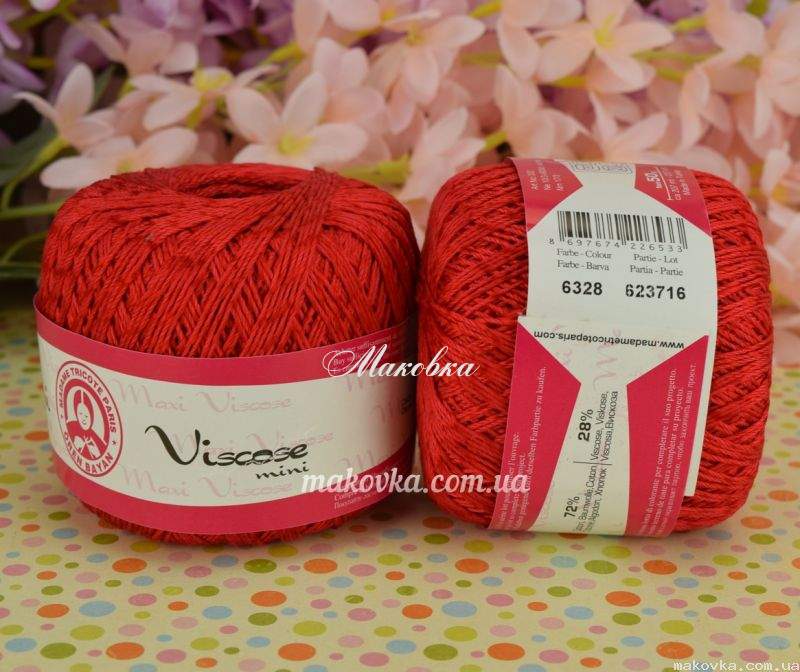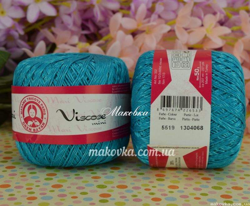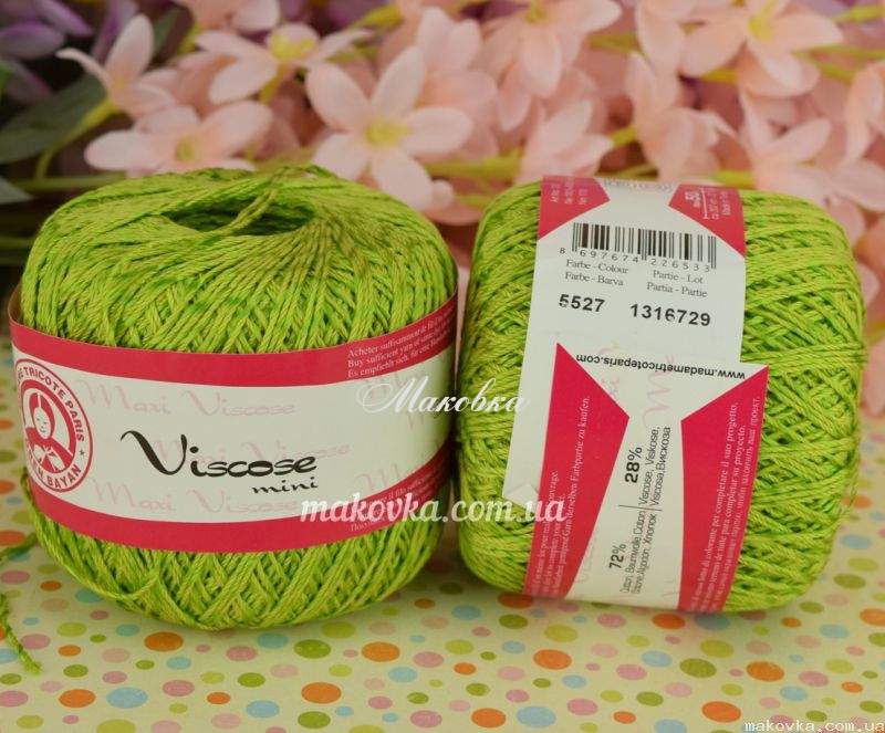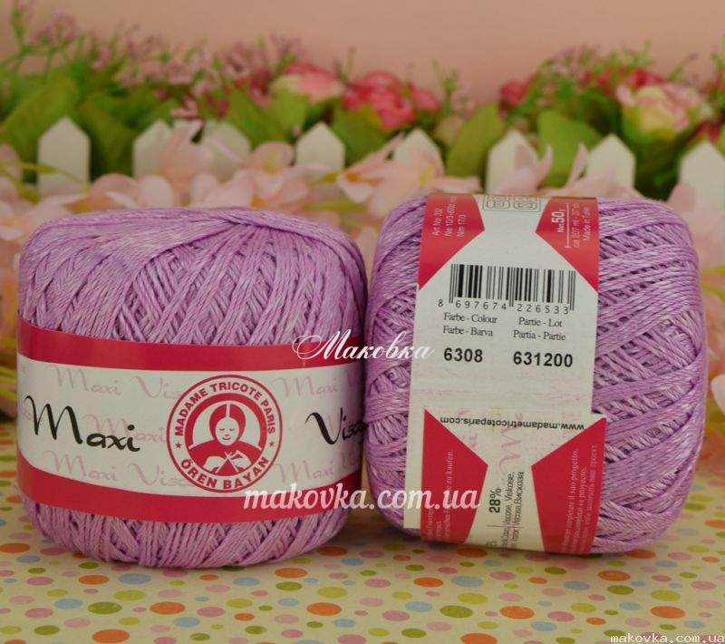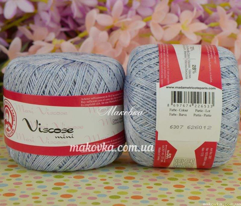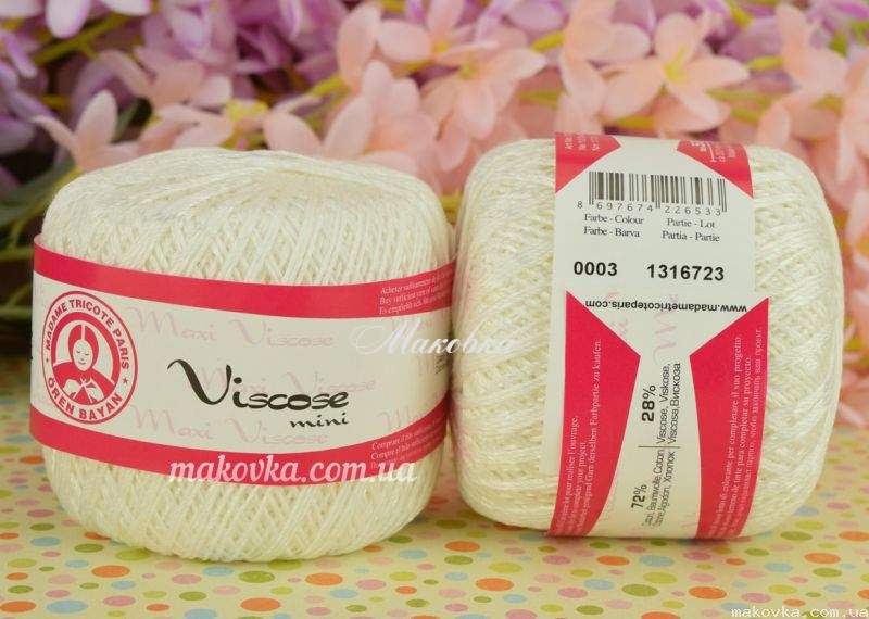 Maxi Viscose - тонкая качественная пряжа из смеси хлопка и вискозы. Нитка тонкая, приятная и очень красиво смотрится. Вискозная нить дает красивый блеск, более матоввая хлопковая нить добавляет стойкости к вытягивинию. В целом изделие из этой пряжи смотрится красиво и нарядно.