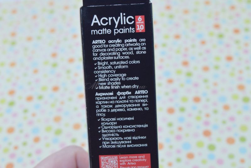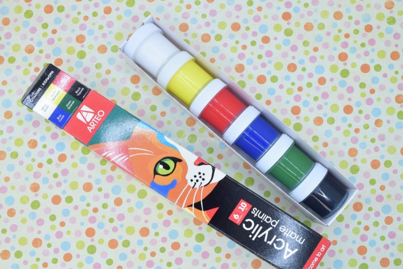 Набір акрилових фарб Arteo , які чудово підійдуть для малювання та розмальовування, для декорування поверхонь при декупажі, скрапбукінгу тощо. Фарба у невеликій баночці з пластиковою кришкою. Можна фарбувати картон, папір, дерево, фанеру, МДФ тощо