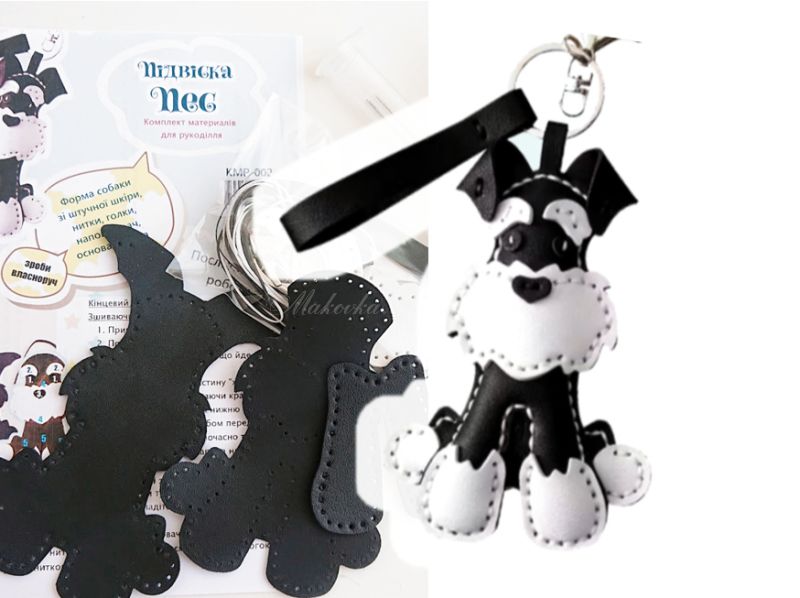 Як здорово і захоплюючи пошити іграшку-брелок власноруч! Деталі зі штучної шкіри мають перфорацію для полегшення зшивання.