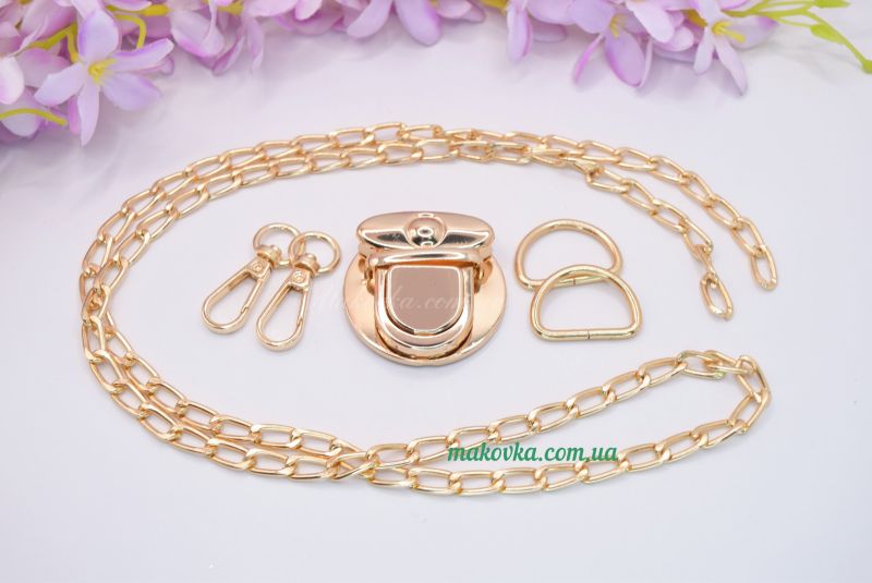 Корисний комплект фурнітури, для сумочки або клатча. Усі комплектуючі схожого кольору.