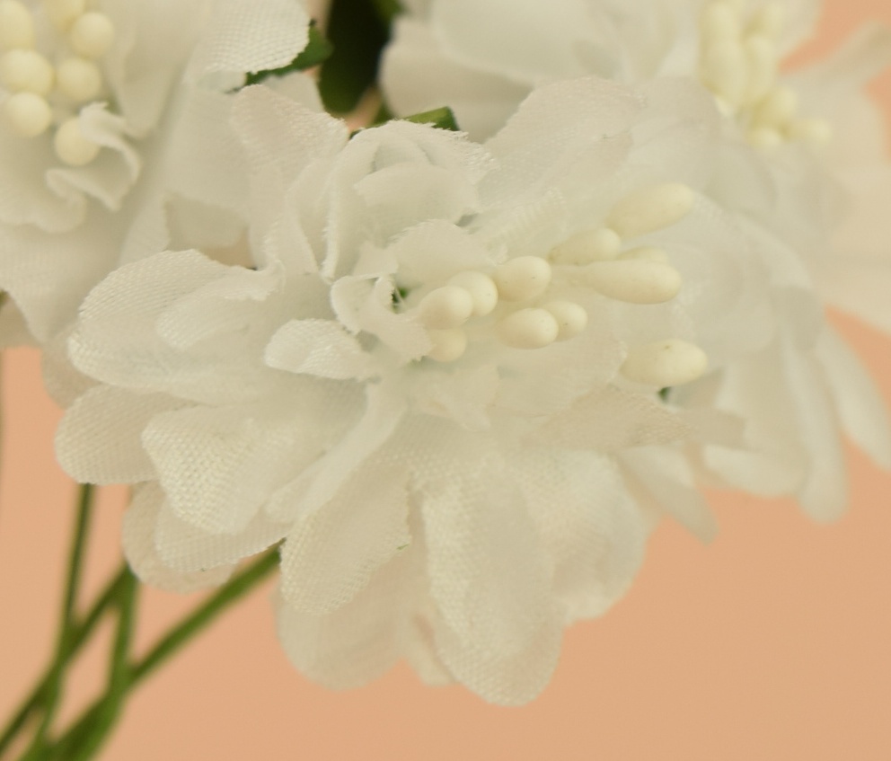 Набор ГВОЗДИКИ с тычинками, 3,5см, тканевые, 6 шт, БЕЛЫЕ