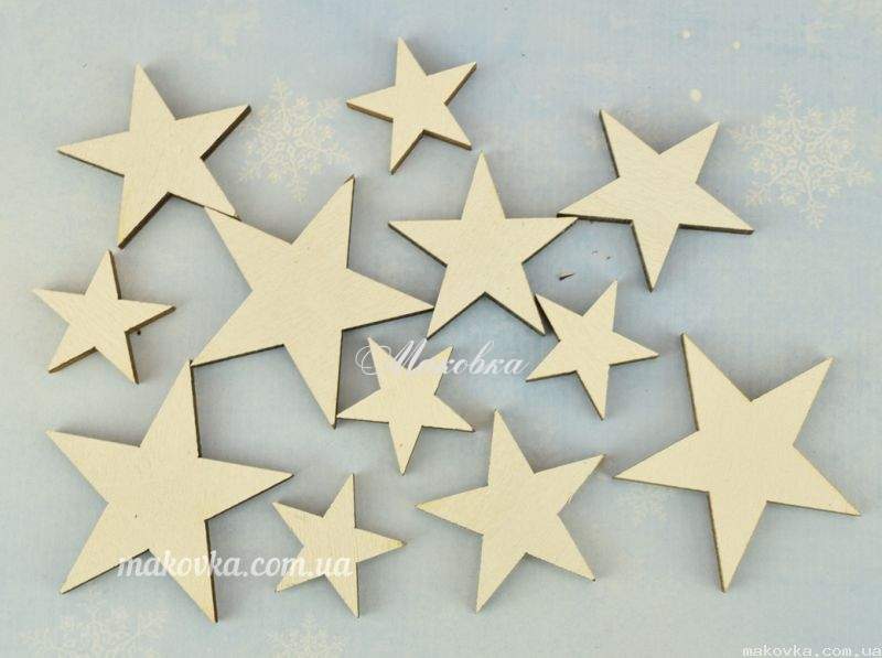 Набор деревянных плоских фигурок - звездочек. В наборе звезды разного размера. Прекрасно подойдут для декорирования самых разных предметов - от открыток и подарков, до альбомов, панно и пр. А также как антураж для фотографирования.