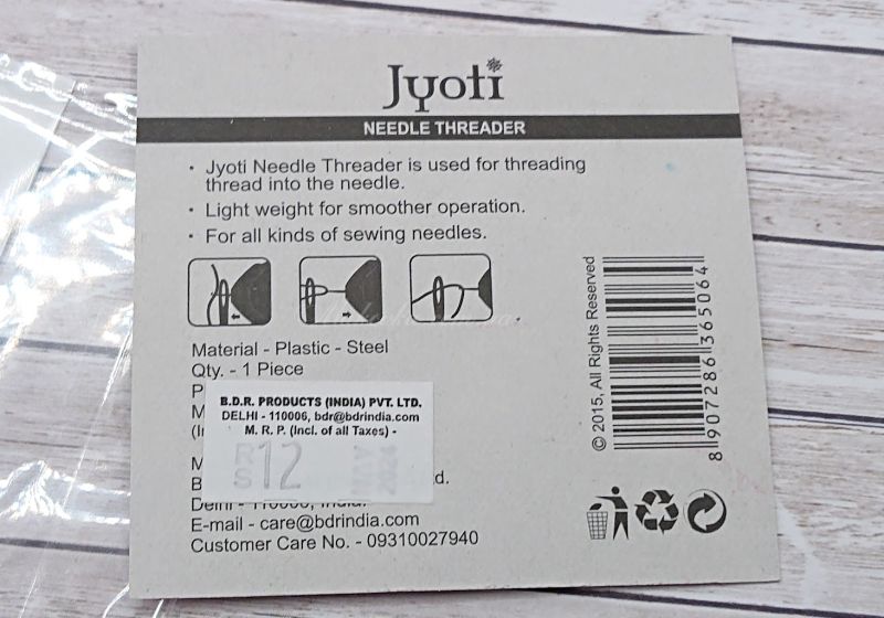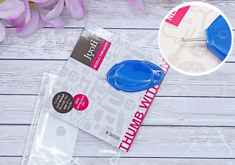 Заправник нитки допоможе швидко втягнути нитку в вушко голки. У цієї моделі пластикова овальна ручка і крихітний металевий гачок, який потрібно просунути в вушко голки і підчепити ним нитку.