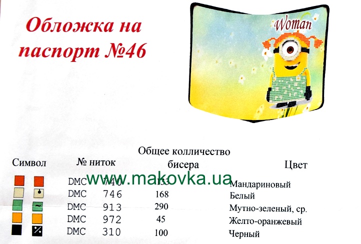 Обложка на паспорт со схемой под вышивку №46 Миньен-девочка, ТМ Красуня