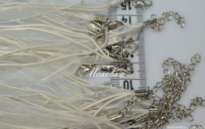 На эту основу можно повесить муранскую подвеску, кулон или другое крупное украшение. Также можно украсить бусинами европейского стиля с широким отверстием. Длина: 44 см основа + 5 см цепочка Ширина ленты: 9-10 мм Состав: вощенный шнур 2 шт, лента органза 1 шт, замок-карабин Соединение: карабин + цепочка металлическая 5 см |