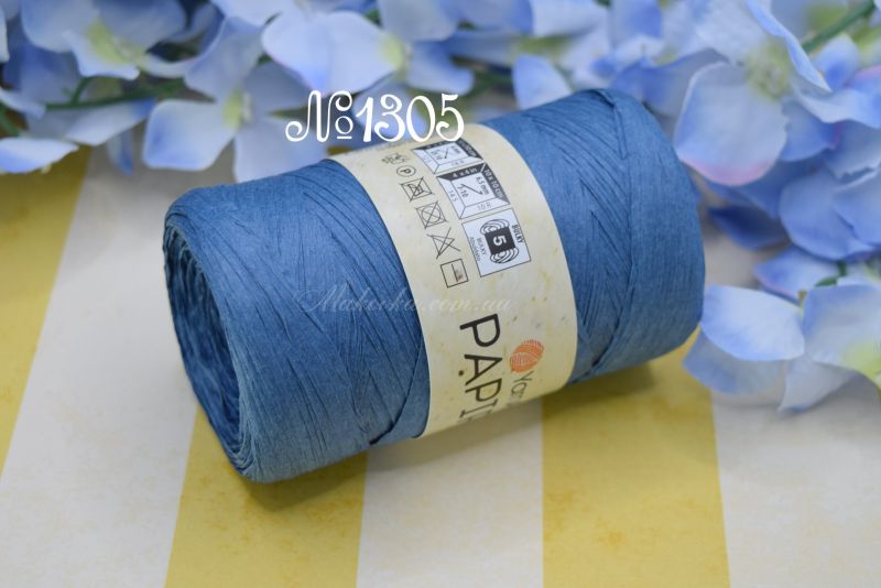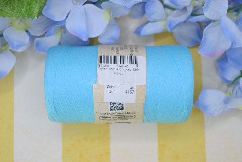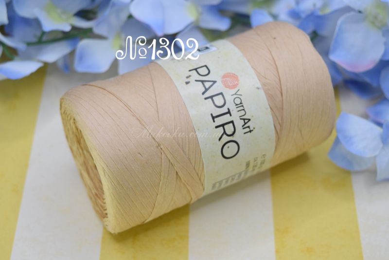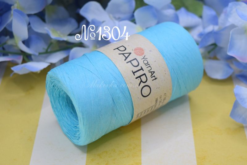 Papiro YarnArt - плоска целюлозна нитка для в'язання шоперів, сумочок, клатчів, капелюшків, різноманітних аксесуарів, а також для виробів і пакування подарунків. Нитка Papiro YarnArt з тонкої целюлози рафії складена в плоску стрічку, ширина якої варіюється від 0,4 до 0,6 мм. Візуально моточки Papiro YarnArt виглядають маленькими за рахунок щільного намотуваннята відсутності картонної бобіни всередині, як, наприклад, у Raffia Fibranatura. Верхній кінчик нитки в мотку завбачливо закріплений скотчем, щоб нитка не розмотувалася сама по собі.