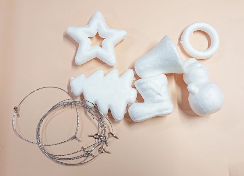 Новорічний набір пінопластових заготовок для декорування. В наборі 6 різних фігурок: