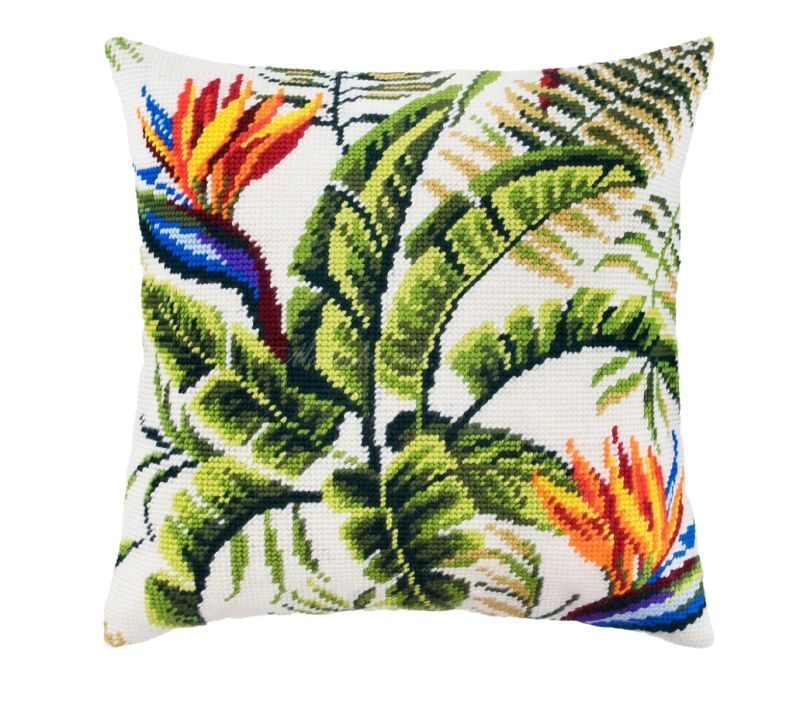 Вам або вашій дитині буде легко вишивати цю симпатичну подушку завдяки товстим ниткам, що використовуються в наборі. Для створення подушки використовується техніка вишивання напів-хрестом (гобеленовий шов). Малюнок нанесений на тканину