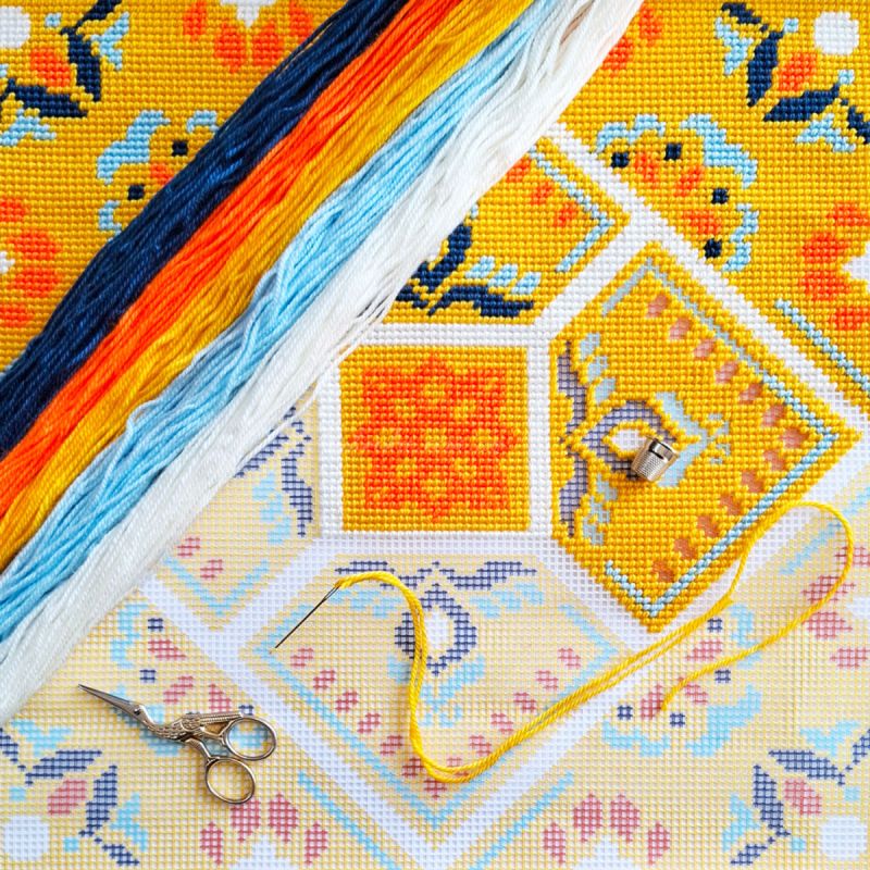 У наборах Чарівниця використовуються високоякісні матеріали: німецька канва Zweigart та акрилова пряжа, що зберігає соковитість барв на довгі роки.