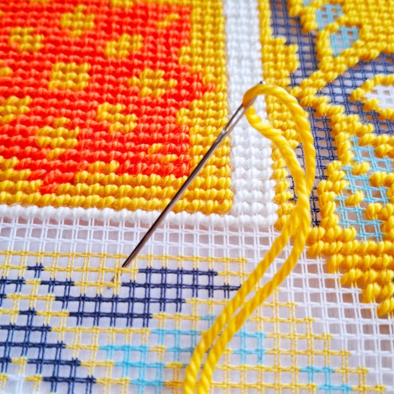 Вам або вашій дитині буде легко вишити цей орнамент завдяки товстим ниткам та великій канві (страмін) з уже нанесеним малюнком. Техніка «напівхрест» дозволяє швидко отримати об'ємний та фактурний результат без складних підрахунків хрестиків.
