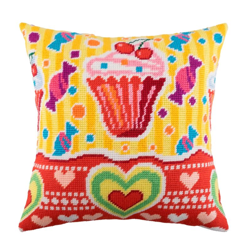 Цей життєрадісний сюжет із апетитним капкейком, вишнями, цукерками та сердечками наповнить ваш дім атмосферою свята та радості.