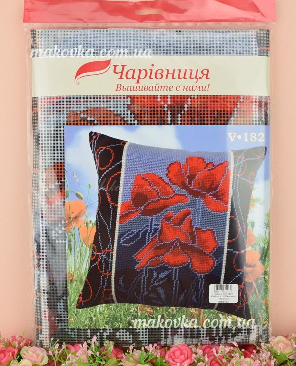 Подушка з маками на темному тлі. Гарна схема, - чудовий результат.