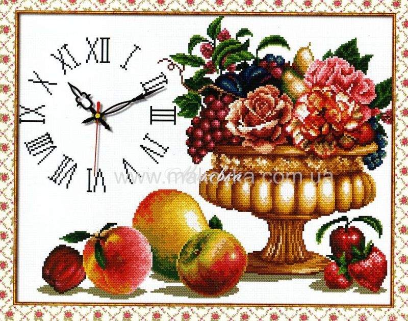 Вишивка Повна чаша символізує достаток. Чаша повна фруктів і прекрасних квітів. Ви можете вишити гарну картину або годинник.