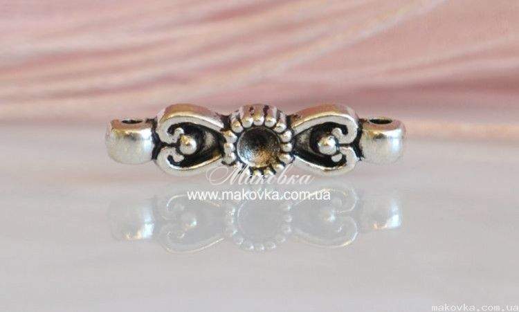 Проставка для бижутерии под стразу 22х5х4 мм, 2/2, античное серебро, 1 штЭтот компонент может использоваться и как проставка, и как конектор. По центру есть углубление для стразы. Размер: 26х8х5 мм Размер отверстий: 0,5 мм Цвет: античное серебро Материал: сплав, не содержит тяжелые металлы (свинец, никель, кадмий) Произведено: Китай Цена за 1 штуку |