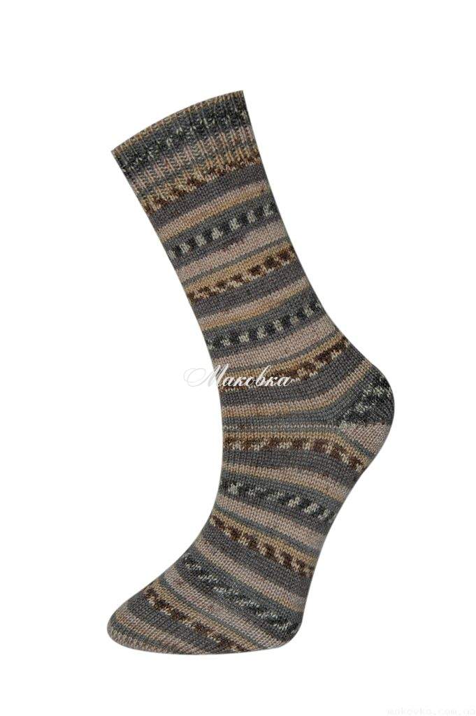 Socks Bamboo Himalaya забарвлена різними кольорами. Коли ви в'яжете, смужки і малюнок виходять самі по собі, і не потрібно міняти на нитку іншого кольору. Це не тільки зручно, але й вигідно, оскільки ви купуєте всього 1 моток ниток, а не кілька мотків різного кольору :) Мотка вистачає на пару шкарпеток стандартної висоти.