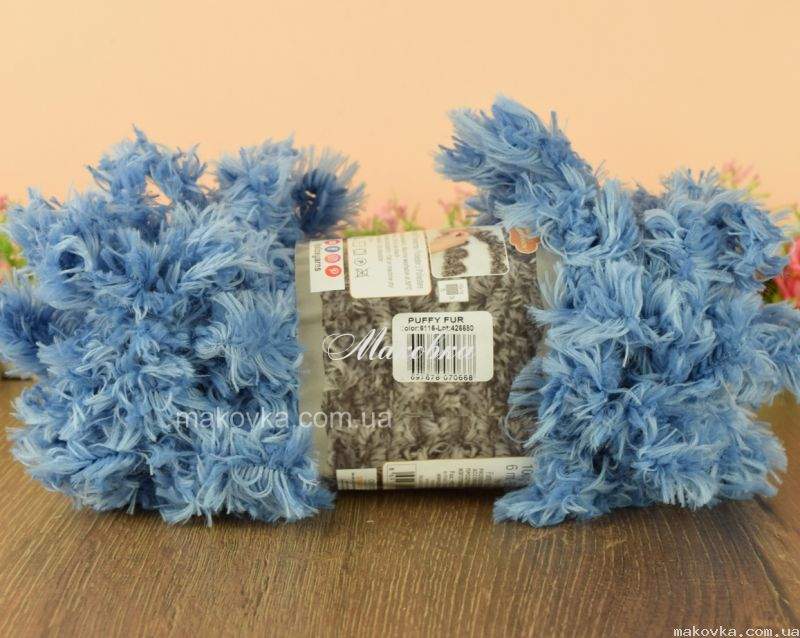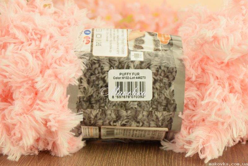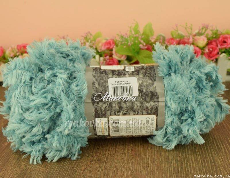 Puffy FUR Alize - це дуже м'які нитки з длінним двослойним ворсом для в'язання руками (без спиць і гачка) шарфиків, пледів, подушок, килимків, накидок, пончо та інших простих виробів. Нитка середньої товщини, дуже м'яка і ніжна. Складається з однакових великих петель (петлі зафіксовані). Виглядає як букле, але в виробі звичайна в'язка.