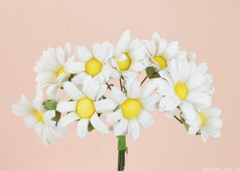 Набір ромашок на тонких дротяних стеблинках. пелюстки тканинні