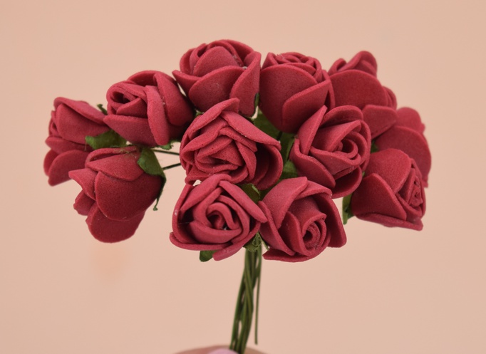 Розочки из фоамирана, 15-18 мм ТБордовые, 12 шт/уп