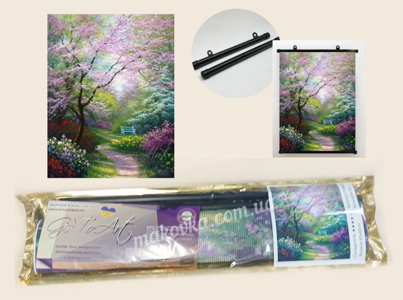 Держатель с трубчатой конструкцией обеспечивает надежную фиксацию полотна. В комплекте две пластиковые трубки, боковые заглушки и крепления для подвешивания. Готовая картина выглядит стильно и ухоженно.