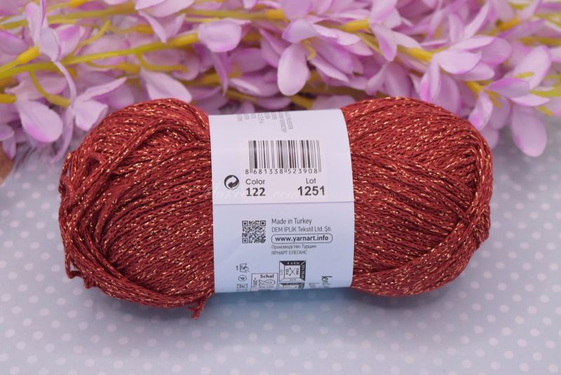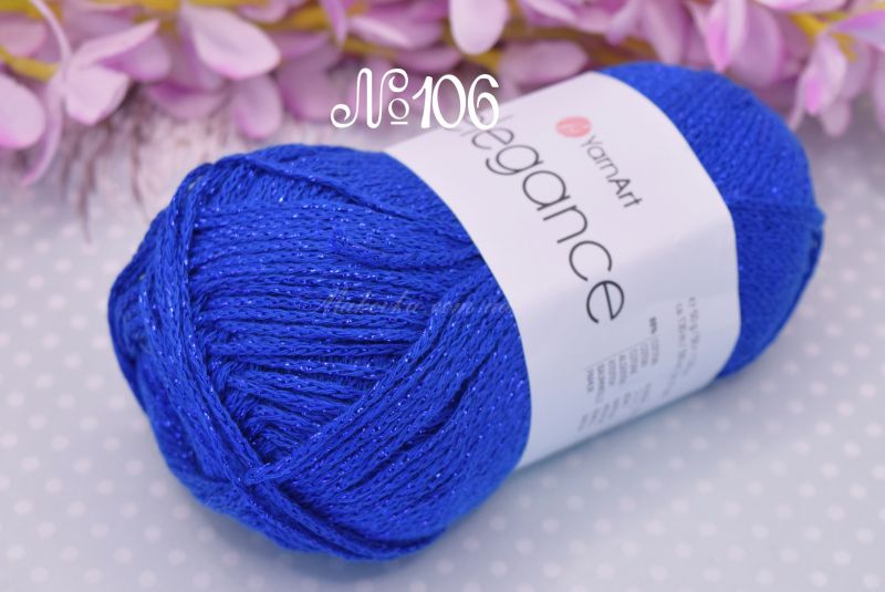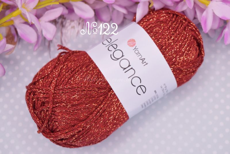 Elegance от Yarn Art - хлопковая пряжа средней толщины с добавлением люрекса. Нитка не кручена привычным образом, а сплетена , как шнурок. Моток пряжи Elegance на ощупь довольно мягкий и приятный. Люрекс может быть в тон нитке, а может немного отличаться, в зависимости от цвета