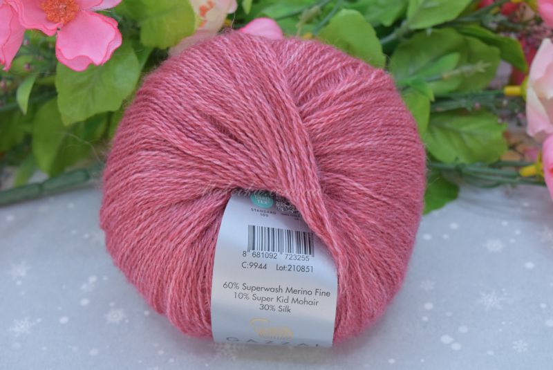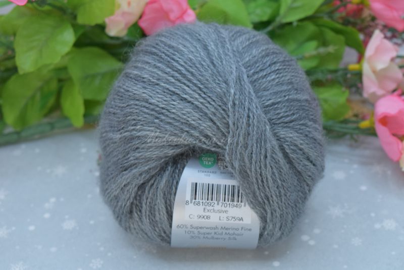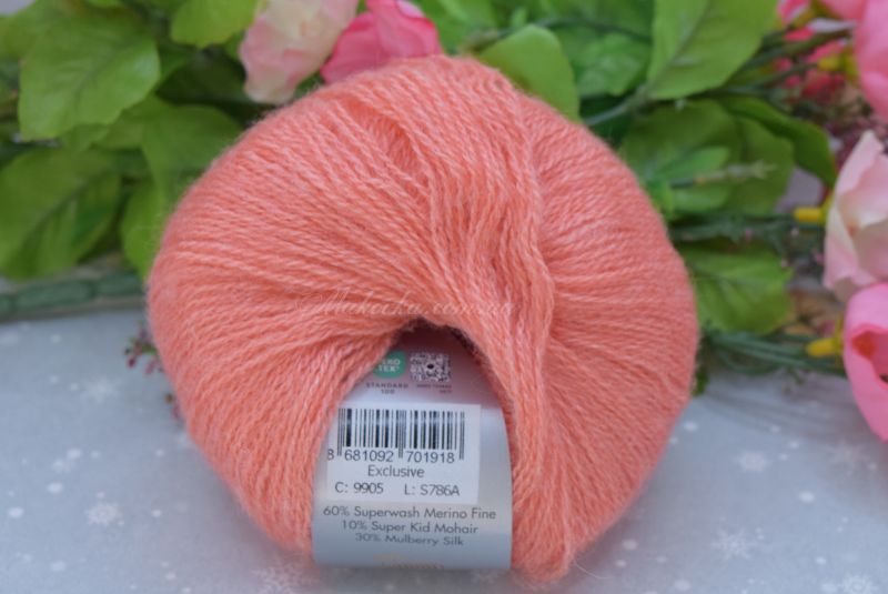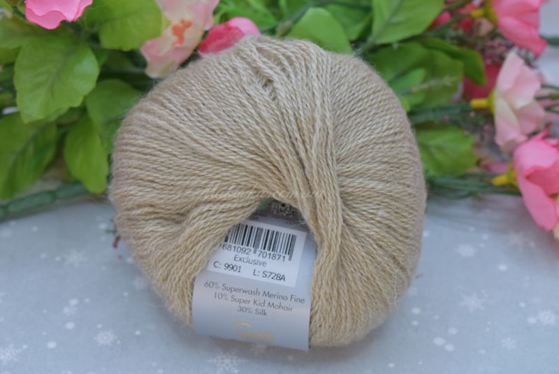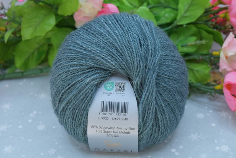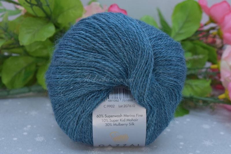 Пряжа GAZZAL Exclusive - тонкая пряжа премиум класса. В составе натуральный шелк, кид-мохер и нежная мериносовая шерсть. Нитка мягкая, слегка ворсистая, с приглушенным блеском и немного белёсая. Нитка может иметь утолщения, сформированные шелковыми волокнами