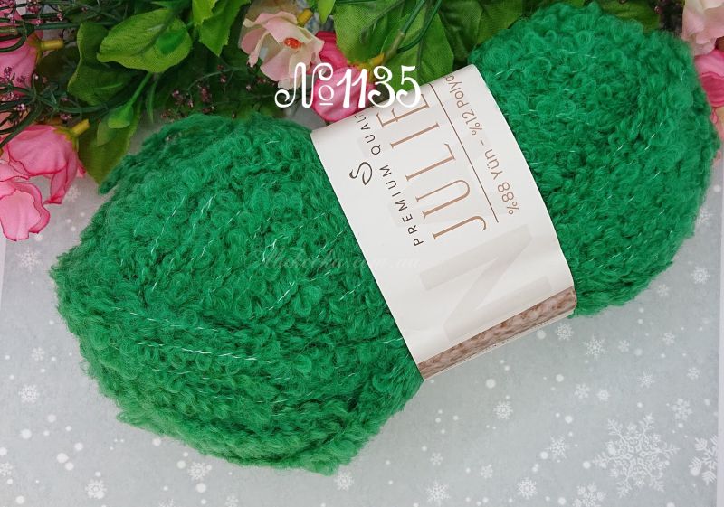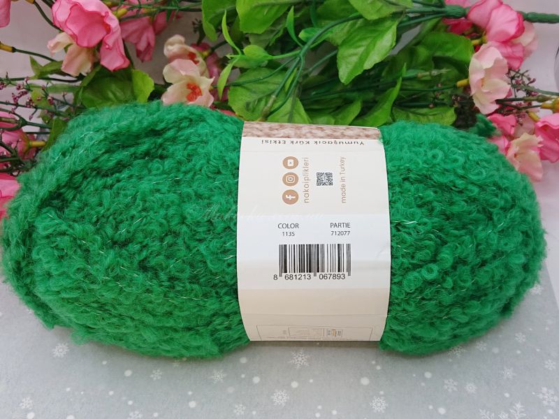 JULIET Nako - фасонная полушерстяная пряжа с неравномерными по размеру и немного хаотично расположенными "узелками". Нитка, благодаря буклированной фактуре, рыхлая. Мотки выглядят большими и "воздушыми" на ощупь. В составве пряжи Nako JULIET высокое содержание шерсти - 88% и 12% полиамида для стабилизации шерсти. Из-за большого содержания шерсти, для чувствительной кожи пряжа может казаться немного колючей.