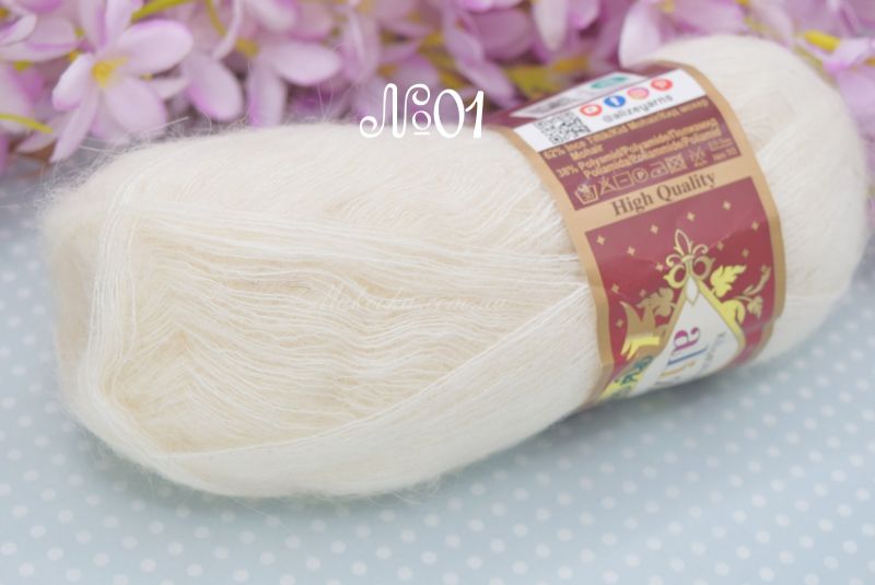 Очень-очень мохеровая ниточка! Необыкновенно теплая, нежная, мягкая, как пух! Абсолютно без дефектов, ровная, пух не "лезет". Вязала шарфы и шали, палантины спицами №№ 5 и 6 в одну нитку и в две нитки ажуром и английской резинкой - изделия очень хорошо драпируются, красивые, нежные цвета. Прекрасное качество, работать - одно удовольствие!