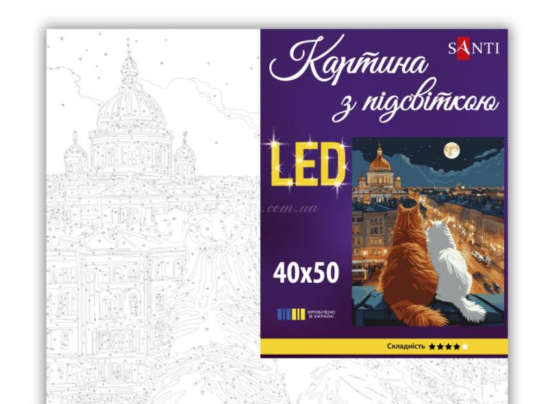 Картина по номерам от бренда SANTI имеет встроенные LED элементы, которые подсвечивают картину и придают ей невероятный эффект живого сюжета. Картина с LED элементами может использоваться не только в качестве декора, но и как ночник, украшая и дополняя ваш интерьер. Чтобы попасть в безграничный мир творчества и искусства необходимо просто купить картины по номерам с LED подсветкой и следовать инструкциям, прилагаемым к набору.